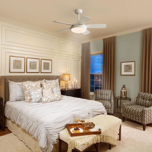 • Modern 42 in. ceiling fan with 5-MDF blades and a white finish