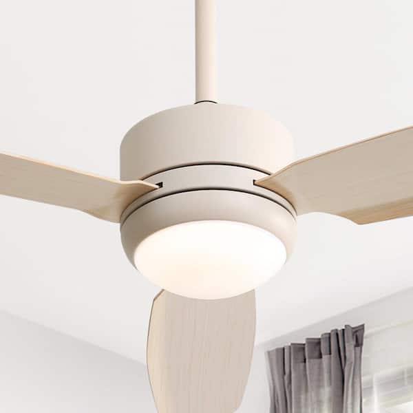 46 in. Indoor/Outdoor Beige Downrod Modern Ceiling Fan with Integrated LED and 6 Speed DC Remote