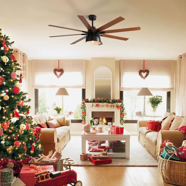 52 in. Indoor/Outdoor Black Ceiling Fan with Light Bulb and Remote Included, 6-Speed DC Motor, 8-Blades