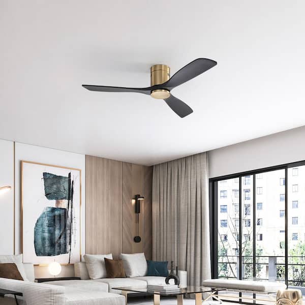 52 in. Indoor/Outdoor Gold Low Profile Wood Ceiling Fan Without Light, 6-Speed DC Motor and Remote Control