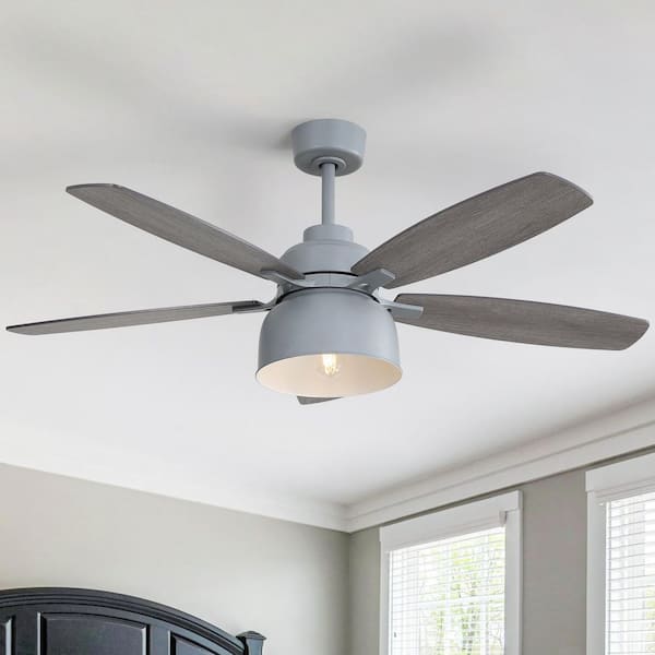 52 in. Indoor/Outdoor Industrial Gray Ceiling Fan with E26 Light Kit, 6-Speed Reversible DC Motor and Remote
