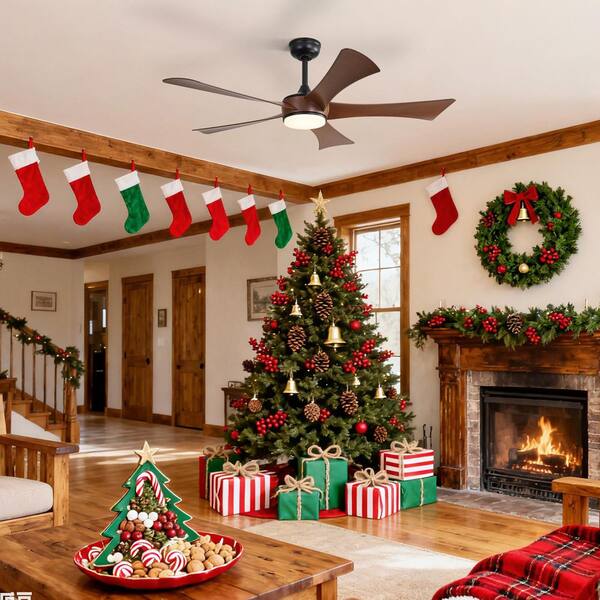 52 in. Indoor/Outdoor Integrated LED Black Ceiling Fan with Light Kit and Remote Included