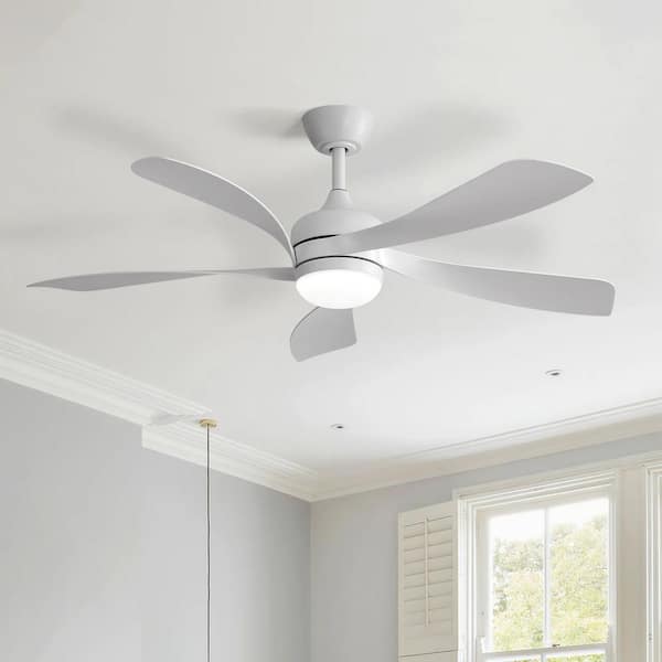 52 in. Indoor/Outdoor White Ceiling Fan with Integrated LED Light and Remote 6-Speed Reversible DC Motor for Living Room