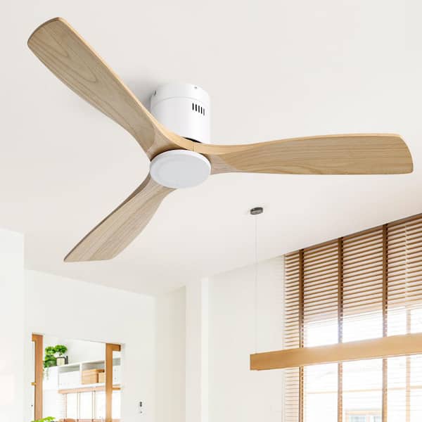 52 in. Indoor/Outdoor White Low Profile Wood Ceiling Fan Without Light, 6-Speed DC Motor and Remote Control