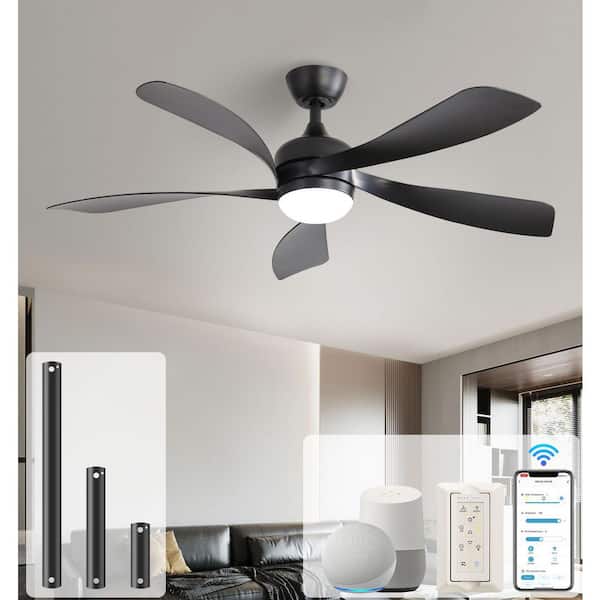 52 in. Smart Indoor/Outdoor Black Ceiling Fan Integrated LED with Light Kit and Remote/App Control