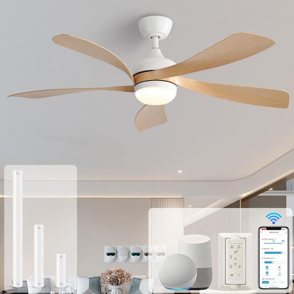 52 in. Smart Indoor/Outdoor White and Beige Ceiling Fan Integrated LED with Light Kit and Remote/App Control