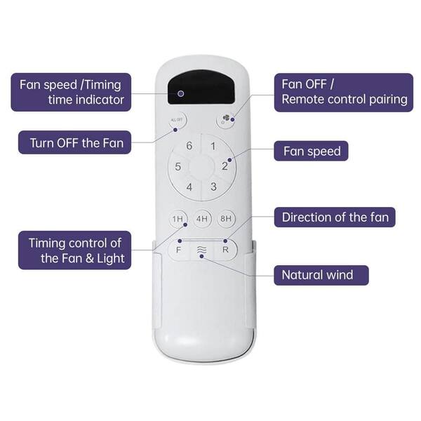 6-Speed Handheld Remote Control and Receiver for Ceiling Fan without Light, Wall Holder Included
