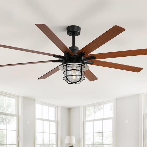 66 in. Indoor/Outdoor Black Ceiling Fan with Light Bulb and Remote Control for Large Room