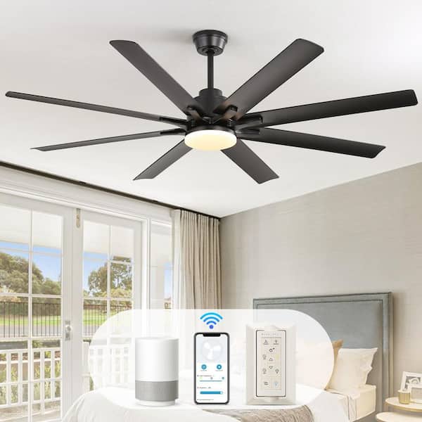66 in. Smart Integrated LED Indoor Black Ceiling Fan with Light Kit and Remote Control