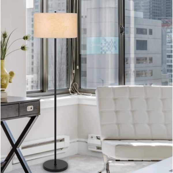 61 in. Black 1-Light Standard Floor Lamp with Drum Shade