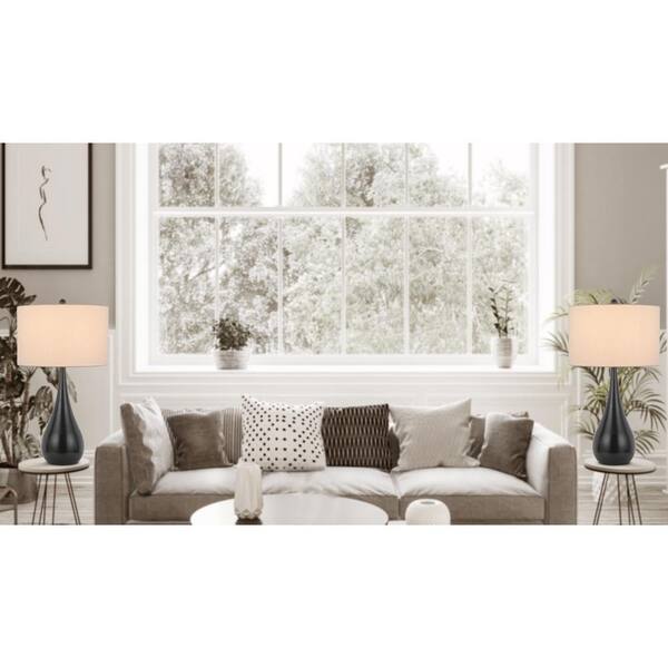 Diego 28.75 in. Dark Bronze Dimmable Bedside Table Lamp and Table Lamp Set with Shade and Finial Lamp (Set of 2)