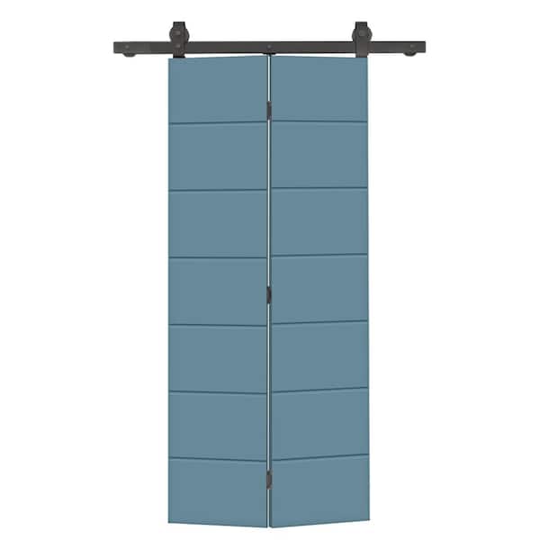 22 in. x 80 in. Hollow Core Dignity Blue Painted MDF Composite Modern Bi-Fold Barn Door with Sliding Hardware Kit