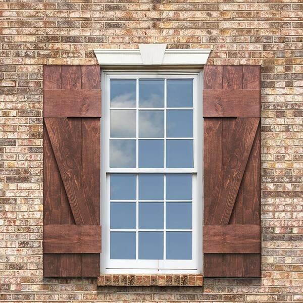 24 in. x 36 in. Pine Wood Closed Board and Batten Z Shutters Pair Walnut