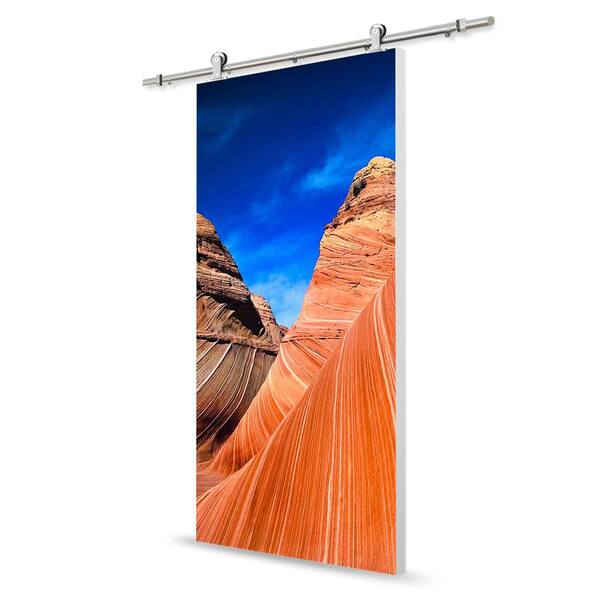 24 in. x 80 in. Artisan Print Series The Wave 01 MDF Modern Interior Sliding Barn Door with Hardware Kit