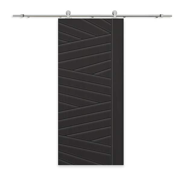 24 in. x 80 in. Black Painted Composite MDF Paneled Interior Sliding Barn Door with Hardware Kit