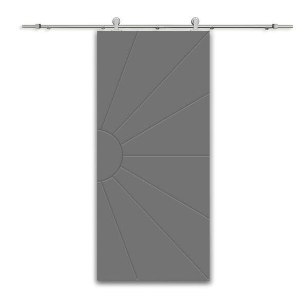 24 in. x 80 in. Light Gray Painted Composite MDF Paneled Interior Sliding Barn Door with Hardware Kit