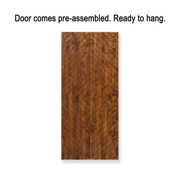 24 in. x 80 in. Walnut Stained Pine Wood Modern Interior Sliding Barn Door with Hardware Kit