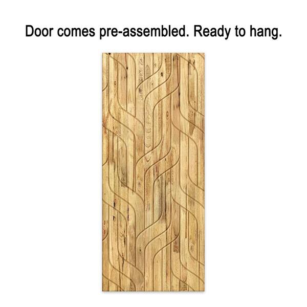 24 in. x 80 in. Weather Oak Stained Pine Wood Modern Interior Sliding Barn Door with Hardware Kit