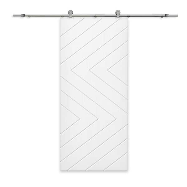 24 in. x 80 in. White Painted Composite MDF Paneled Interior Sliding Barn Door with Hardware Kit