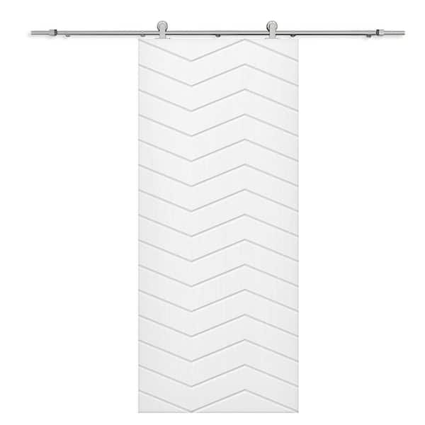 24 in. x 80 in. White Painted Composite MDF Paneled Interior Sliding Barn Door with Hardware Kit