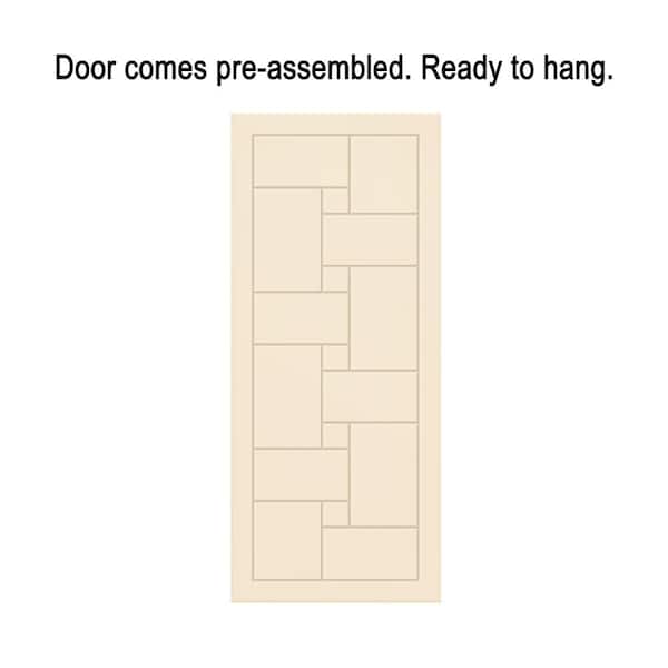 24 in. x 84 in. Beige Painted Composite MDF Paneled Interior Sliding Barn Door with Hardware Kit