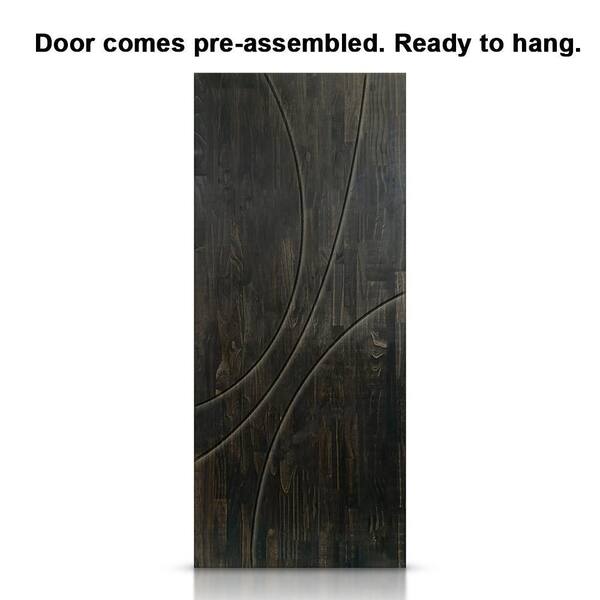 24 in. x 84 in. Charcoal Black Stained Pine Wood Modern Interior Sliding Barn Door with Hardware Kit