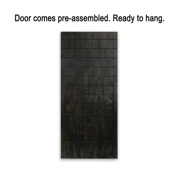 24 in. x 84 in. Charcoal Black Stained Pine Wood Modern Interior Sliding Barn Door with Hardware Kit