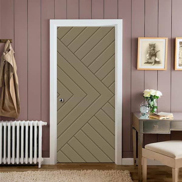 24 in. x 84 in. Chevron Arrow Right-Handed Hollow-Core Olive Green Painted Composite Single Prehung Interior Door