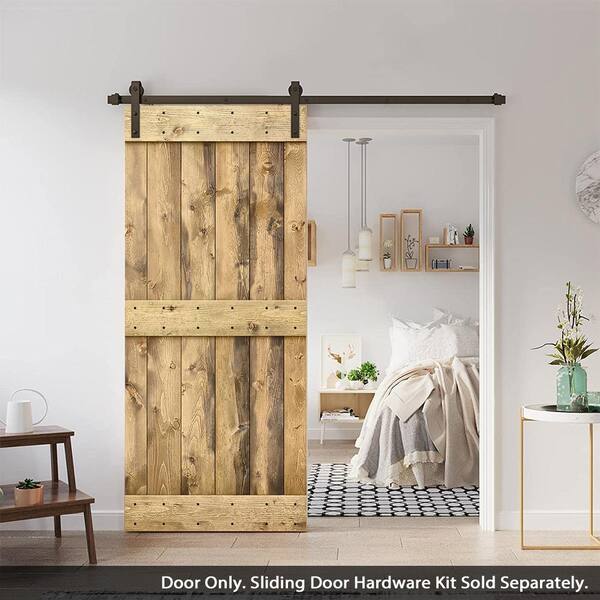 24 in. x 84 in. Distressed Mid-Bar Series Weather Oak Solid Knotty Pine Wood Interior Sliding Barn Door Slab