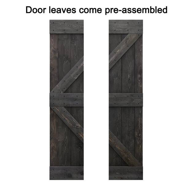 24 in. x 84 in. K Pre Assembled Solid Core Charcoal Black Stained Wood Bi-fold Barn Door with Sliding Hardware Kit