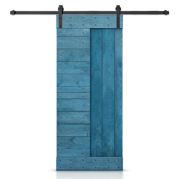 24 in. x 84 in. Ocean Blue Stained DIY Knotty Pine Wood Interior Sliding Barn Door with Hardware Kit