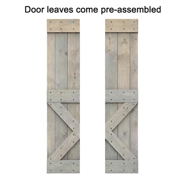 24 in. x 84 in. Solid Core Smoke Gray Stained Wood Bi-Fold Barn Door with Sliding Hardware Kit Mini X Pre Assembled