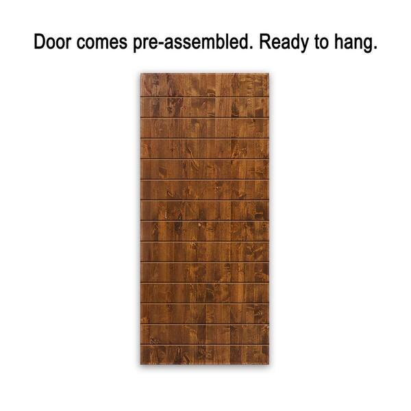 24 in. x 84 in. Walnut Stained Pine Wood Modern Interior Sliding Barn Door with Hardware Kit