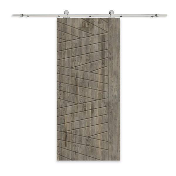 24 in. x 84 in. Weather Gray Stained Pine Wood Modern Interior Sliding Barn Door with Hardware Kit
