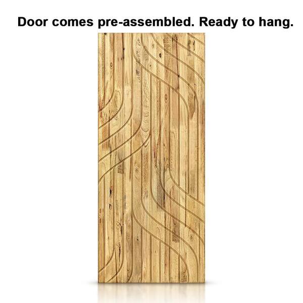 24 in. x 84 in. Weather Oak Stained Pine Wood Modern Interior Sliding Barn Door with Hardware Kit