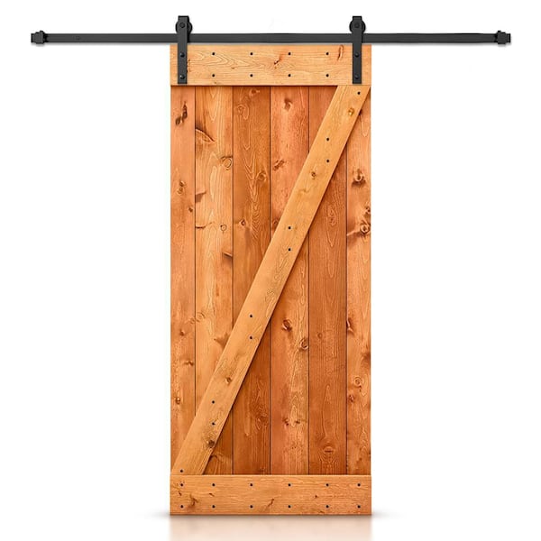 26 in. x 84 in. Distressed Z-Series Red Walnut Stained DIY Wood Interior Sliding Barn Door with Hardware Kit