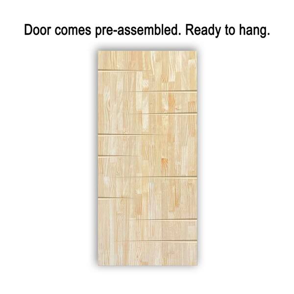 28 in. x 84 in. Natural Pine Wood Unfinished Interior Sliding Barn Door with Hardware Kit
