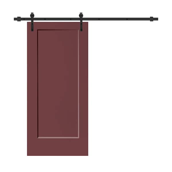 30 in. x 80 in. 1-Panel Maroon Stained Composite MDF Interior Sliding Barn Door with Hardware Kit