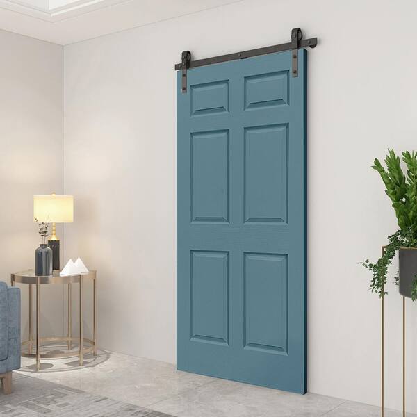 30 in. x 80 in. 6 Panel Dignity Blue Painted MDF Composite Bi-Fold Barn Door with Sliding Hardware Kit