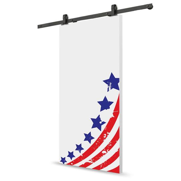 30 in. x 80 in. Artisan Print Series Star and Stripes MDF Modern Interior Sliding Barn Door with Hardware Kit