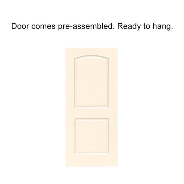 30 in. x 80 in. Beige Stained Composite MDF 2-Panel Round Top Interior Sliding Barn Door with Hardware Kit
