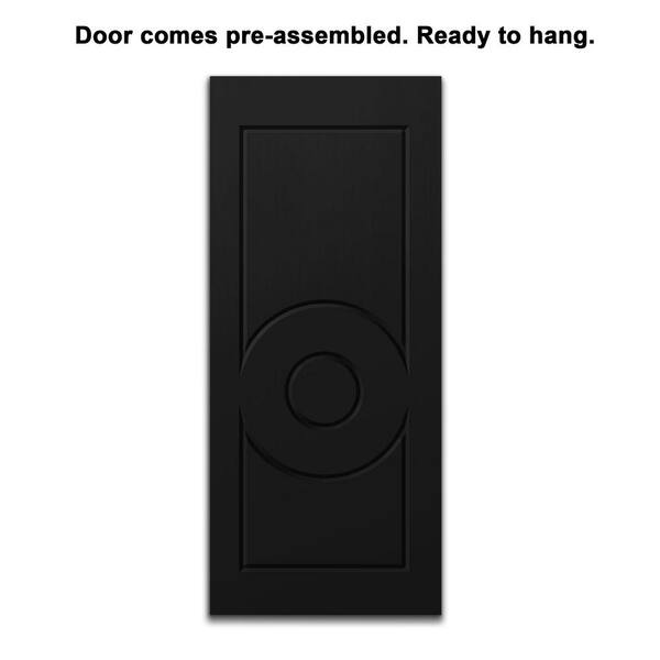 30 in. x 80 in. Black Painted Composite MDF Paneled Interior Sliding Barn Door with Hardware Kit