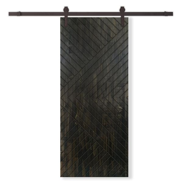 30 in. x 80 in. Charcoal Black Stained Pine Wood Modern Interior Sliding Barn Door with Hardware Kit