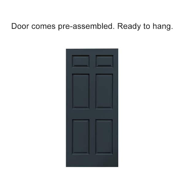 30 in. x 80 in. Charcoal Gray Painted Composite MDF 6-Panel Interior Sliding Barn Door with Hardware Kit