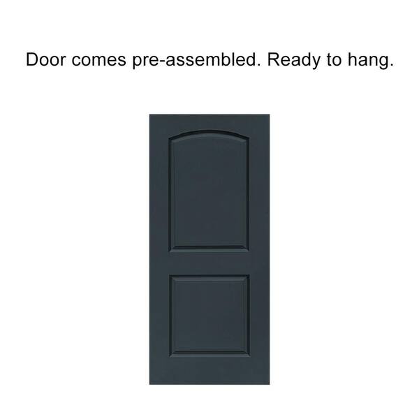 30 in. x 80 in. Charcoal Gray Stained Composite MDF 2-Panel Round Top Interior Sliding Barn Door with Hardware Kit