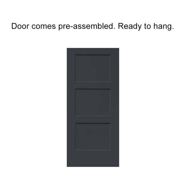 30 in. x 80 in. Charcoal Gray Stained Composite MDF 3-Panel Equal Style Interior Sliding Barn Door with Hardware Kit