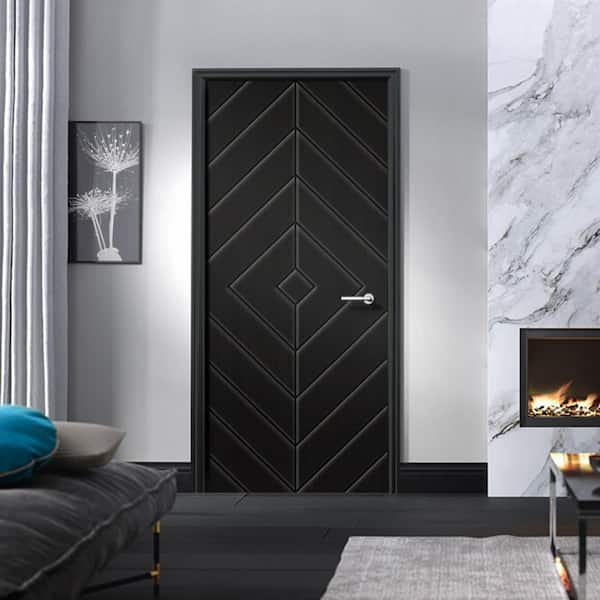 30 in. x 80 in. Diamond Left-Handed Hollow-Core Black Painted Smooth Composite Single Prehung Interior Door