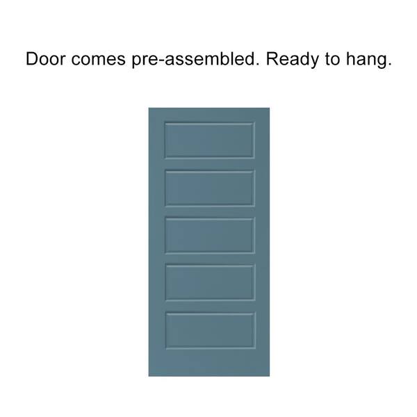 30 in. x 80 in. Dignity Blue Stained Composite MDF 5 Panel Interior Sliding Barn Door with Hardware Kit