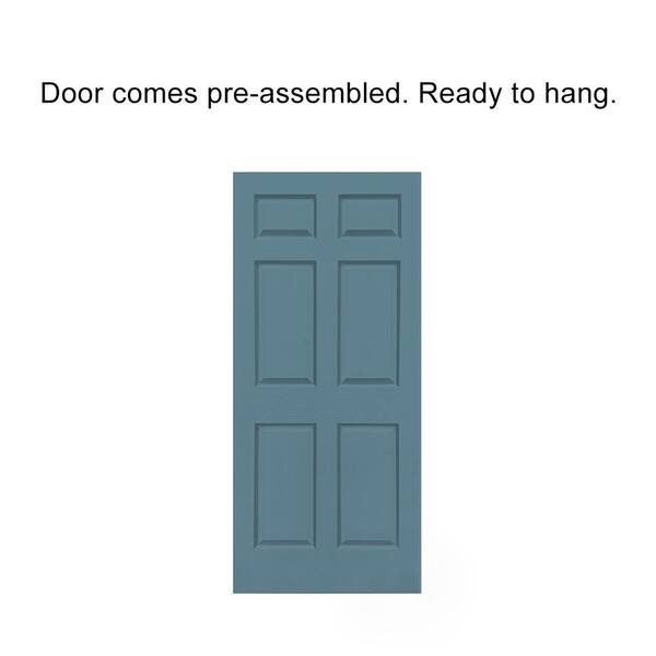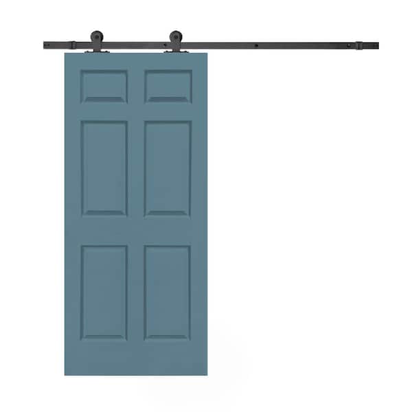 30 in. x 80 in. Dignity Blue Stained Composite MDF 6-Panel Interior Sliding Barn Door with Hardware Kit