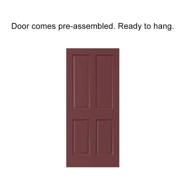 30 in. x 80 in. Maroon Stained Composite MDF 4 Panel Interior Sliding Barn Door with Hardware Kit